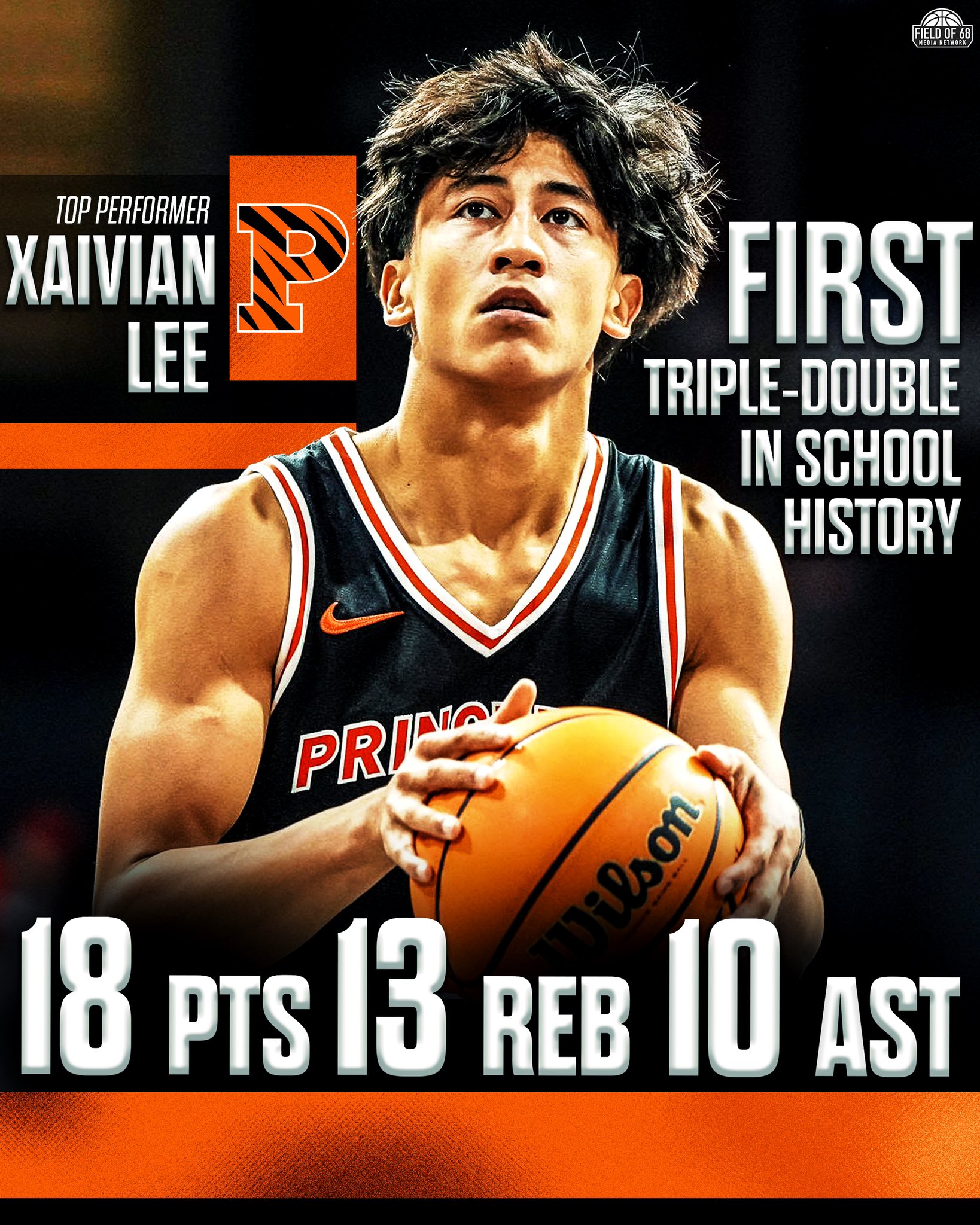 普利斯頓大學(xué)后衛(wèi)賽維安-李本場(chǎng)比賽發(fā)揮出色,他出戰(zhàn)36分鐘,14投7中,三分3中1,罰球4中3,砍下18分13籃板10助攻的三雙,另有2搶斷進(jìn)賬。這是普林斯頓大學(xué)校史首個(gè)三雙。賽維安-李也成為了2019年巴雷特之后,首個(gè)在面對(duì)NCAA D1級(jí)別球隊(duì)時(shí),砍下三雙的加拿大球員。