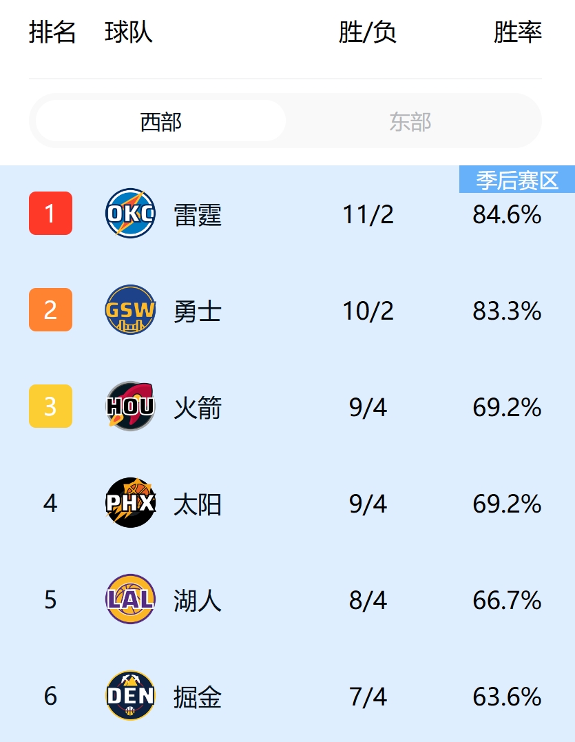 本場(chǎng)比賽之后,勇士戰(zhàn)績(jī)來到10勝2負(fù),緊追先打一場(chǎng)西部第1雷霆的11勝2負(fù)(并且勇士手握對(duì)雷霆的交手優(yōu)勢(shì))。