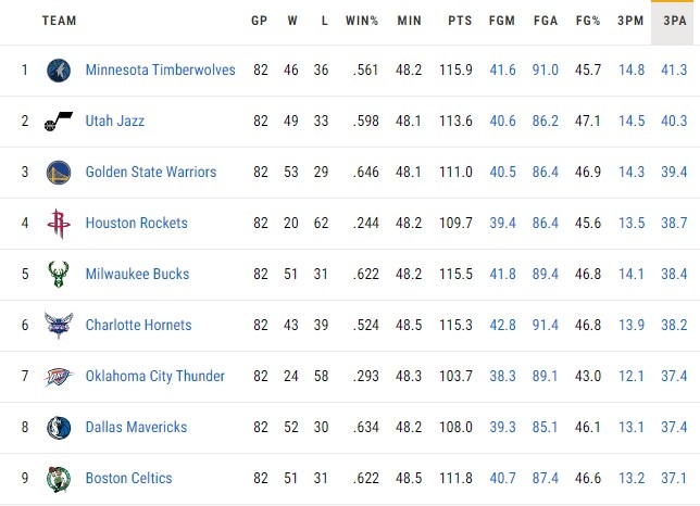 而到了本賽季,他們的三分出手次數(shù)來到恐怖的51.1次,斷檔領(lǐng)先排名第二的黃蜂。