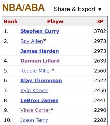 本場(chǎng)比賽哈登出戰(zhàn)34分鐘,14投7中,三分8中2,罰球5中4拿到20分6籃板11助攻2搶斷2蓋帽。同時(shí),哈登生涯三分?jǐn)?shù)超越雷-阿倫正式升至歷史第二位。