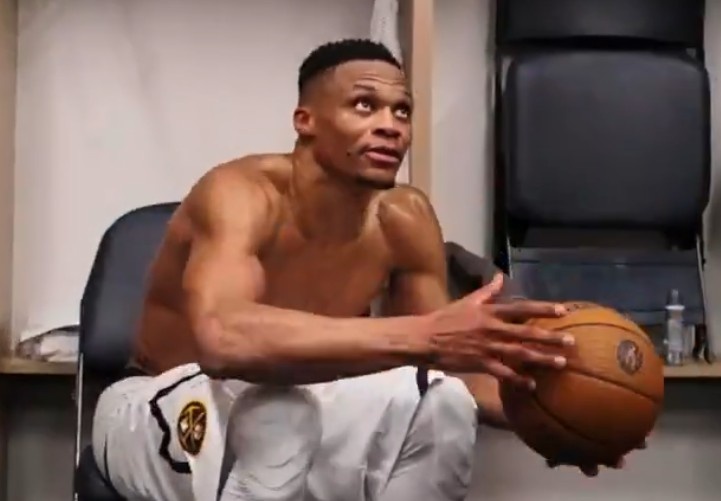 賽后,威少不僅得到了本場(chǎng)比賽用球,還獲得了掘金最佳防守球員大金鏈子。