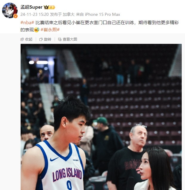 此役,籃網(wǎng)新秀、中國球員崔永熙迎來G聯(lián)盟生涯首秀,在轉(zhuǎn)換進攻中投進追身三分拿下首分。全場比賽,崔永熙上場16分01秒5投1中,三分1中1,得到3分1籃板1蓋帽。