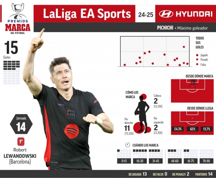 11月25日訊 《馬卡報(bào)》撰文談到西甲、西乙射手榜,巴薩前鋒萊萬(wàn)以15粒進(jìn)球繼續(xù)穩(wěn)居西甲射手榜榜首位置。在本輪對(duì)陣塞爾塔的比賽中,萊萬(wàn)再次取得進(jìn)球。