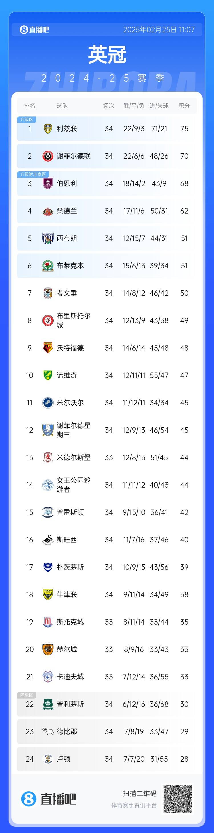 02月25日訊 英冠第34輪天王山之戰(zhàn),利茲聯(lián)客場3-1逆轉(zhuǎn)謝菲爾德聯(lián),全取三分之后利茲已5分領跑英冠,是升超的大熱門。