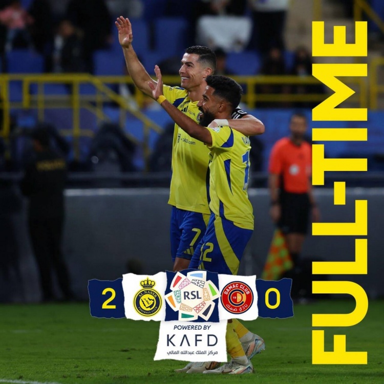 C羅雙響連續(xù)4場(chǎng)破門打進(jìn)7球,利雅得勝利2-0擊敗達(dá)馬克。