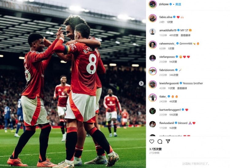 齊爾克澤也在賽后通過社媒曬出自己和隊(duì)友們相擁慶祝的合照,而隊(duì)友阿瑪?shù)?迪亞洛也留言道:“我的中鋒”。