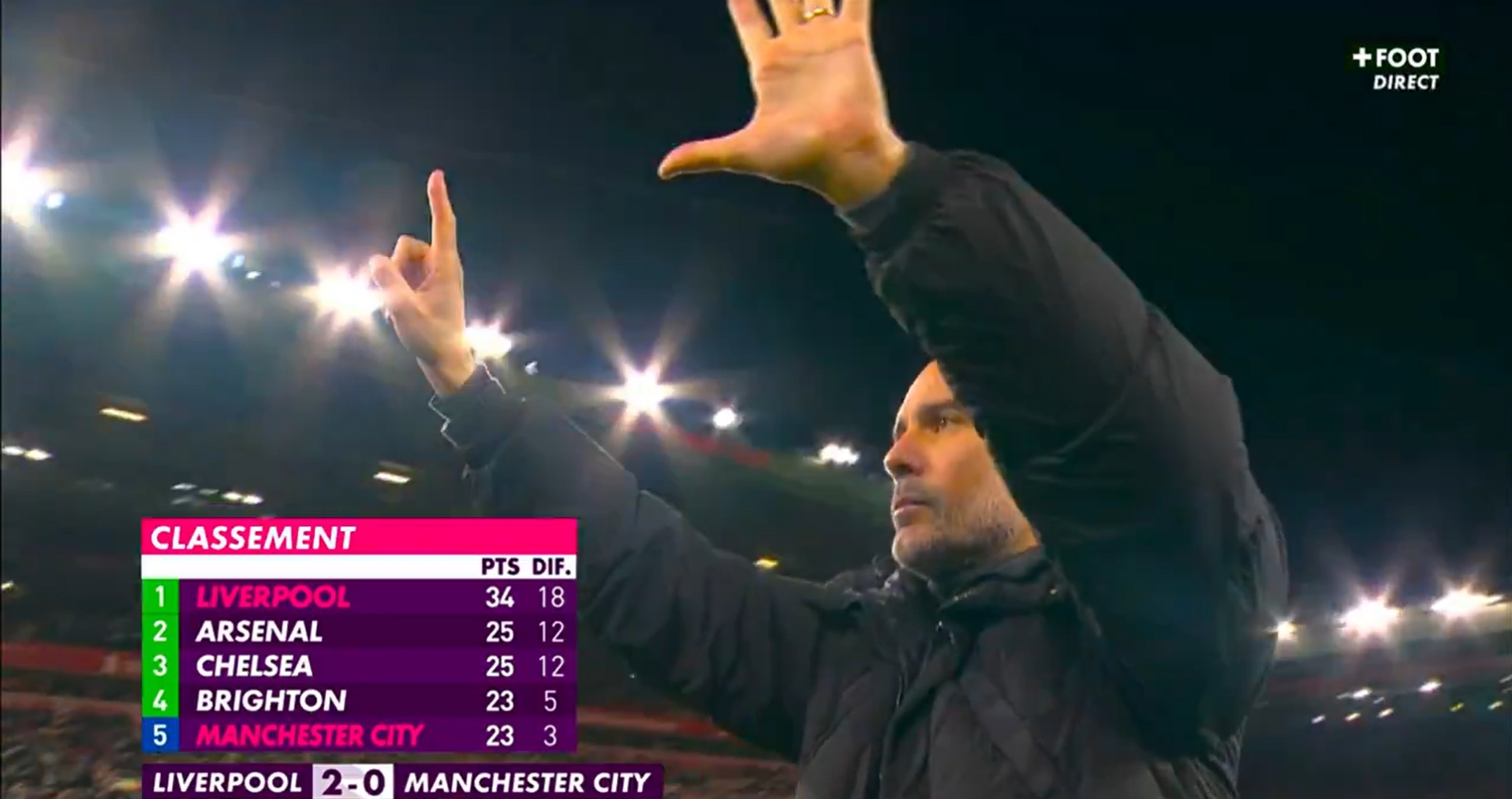 賽后瓜迪奧拉談到該手勢(shì):聽(tīng)著,我為我拿到了6個(gè)英超冠軍而感到驕傲,我沒(méi)想到安菲爾德會(huì)唱我明早被解雇,也許我活該。我沒(méi)想到,不過(guò)也沒(méi)關(guān)系,這就是事實(shí),當(dāng)你贏了,你就是會(huì)笑。