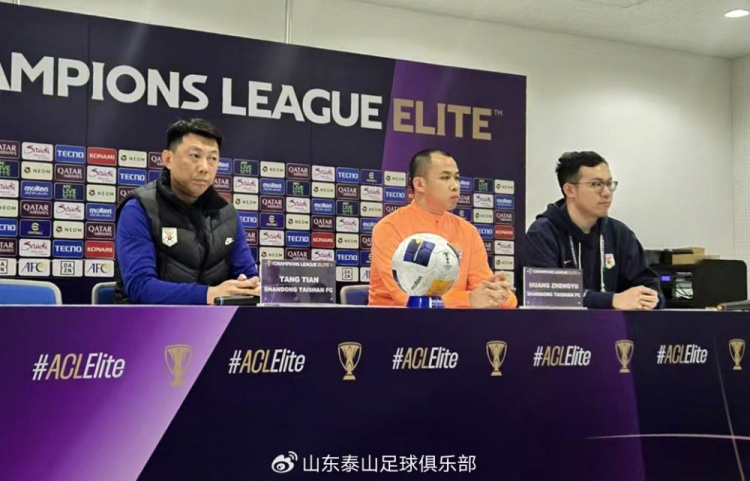12月3日下午,召開了亞冠精英聯(lián)賽第6輪山東泰山隊客場與川崎前鋒隊賽前新聞發(fā)布會,代理主教練唐田與隊員黃政宇參加。發(fā)布會結(jié)束后,山東泰山隊進行了賽前踩場訓練。