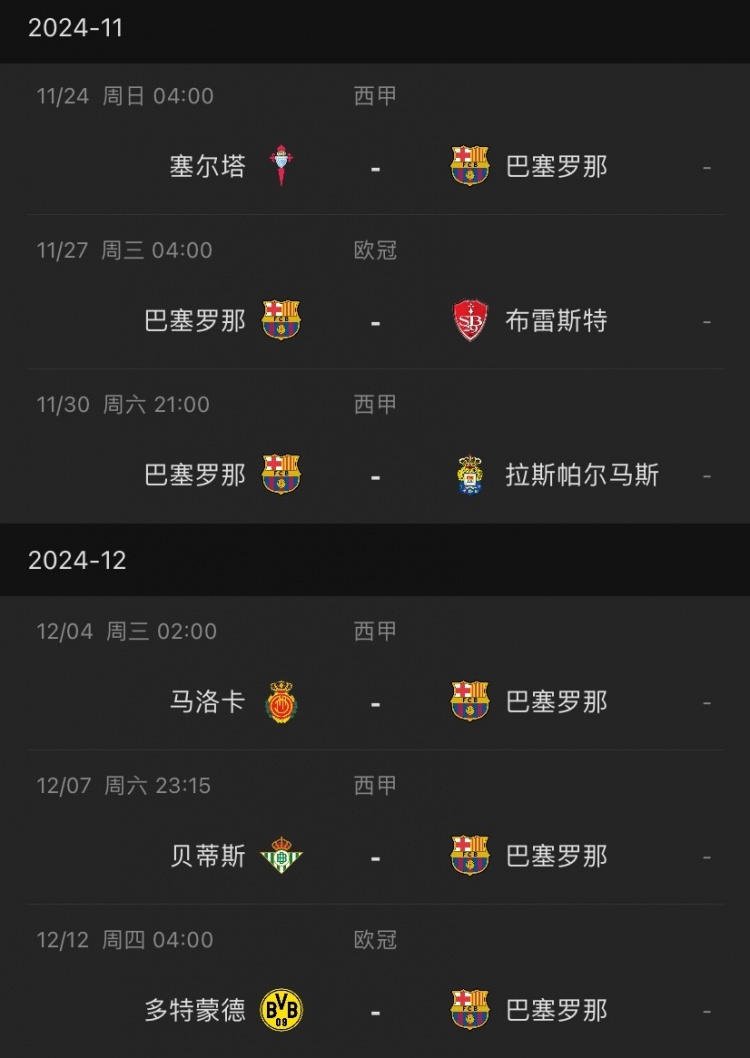 巴薩未來賽程↓