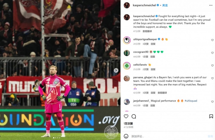 小舒梅切爾也在賽后通過(guò)社媒曬出自己的比賽照,并感嘆道:“昨晚已經(jīng)拼盡全力,但最終未能如愿。足球有時(shí)就是如此殘酷,但我仍為小伙子們深感驕傲,也為身披這件戰(zhàn)袍倍感榮耀。感謝球迷們一如既往難以置信的支持。????”