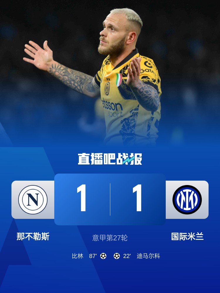 在第27輪意甲聯(lián)賽,國(guó)米客場(chǎng)1-1戰(zhàn)平那不勒斯,在第87分鐘那不勒斯打進(jìn)扳平比分的進(jìn)球。在本賽季的意甲聯(lián)賽中,國(guó)米在第80分鐘之后的丟球有5個(gè),并導(dǎo)致國(guó)米少拿了9分。這5個(gè)丟球分別是:比林在本場(chǎng)比賽進(jìn)球、梅西亞斯在熱那亞對(duì)國(guó)米的進(jìn)球、丹尼-莫塔在蒙扎對(duì)國(guó)米的進(jìn)球、伊爾迪茲在國(guó)米對(duì)尤文的進(jìn)球、加比亞在米蘭德比的進(jìn)球。