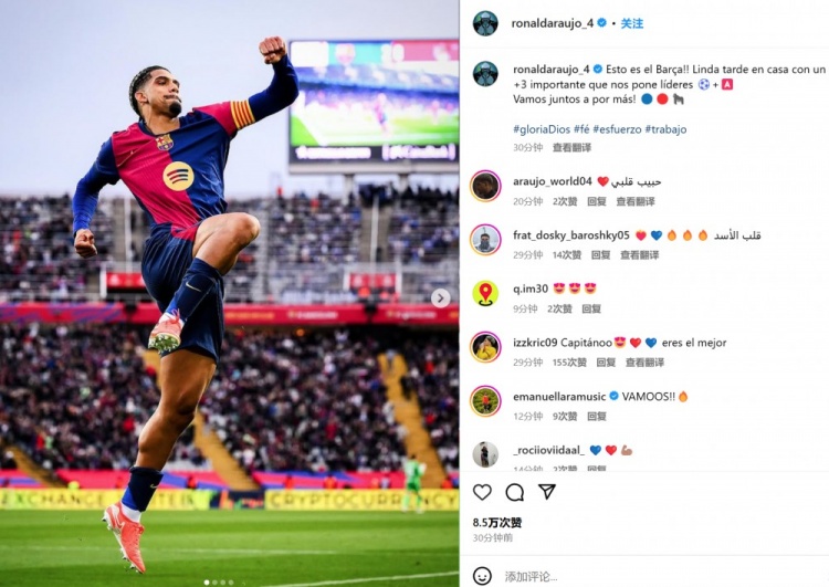 阿勞霍也在賽后通過社媒曬出自己的慶祝照,并配文:“這就是巴薩!在主場度過了一個美好的下午!贏下關鍵三分,并傳射建功!讓我們團結一致贏得更多!”