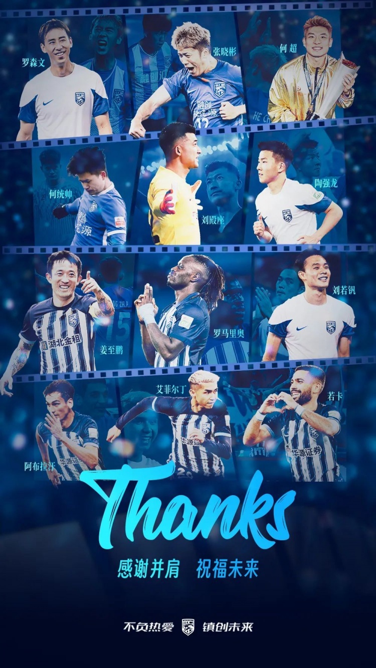 效力武漢三鎮(zhèn)期間,各位球員兢兢業(yè)業(yè)、全力以赴,展現(xiàn)了出色的職業(yè)素養(yǎng)。回首歲月,我們曾并肩登頂榮耀之巔,共享人生高光時刻,也曾在坎坷中相互扶持,風雨同舟,共渡難關,不負這一抹藍色。