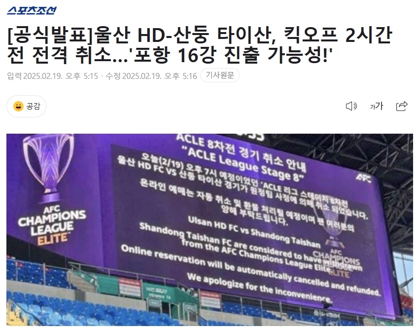 2025-02-19 19:48:27韓媒:泰山俱樂部稱,取消比賽的理由是“球員健康問題”