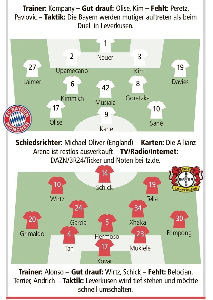 2025-03-05 06:01:14德媒預測拜仁vs藥廠首發(fā):凱恩PK???,薩內、基米希在列