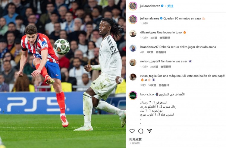 2025-03-05 12:02:33內(nèi)切兜射世界波!阿爾瓦雷斯社媒曬進(jìn)球瞬間:回到主場(chǎng)還有90分鐘