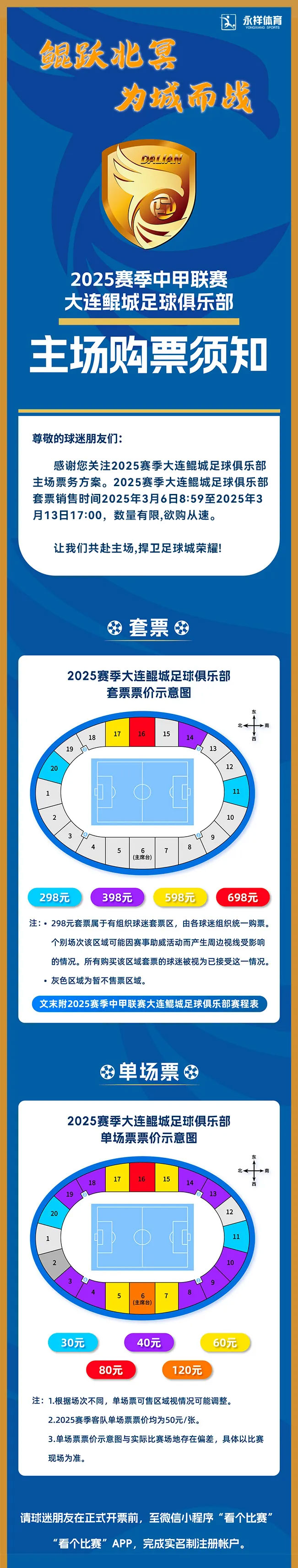 2025-03-05 18:00:33開票倒計時1天!(附2025賽季大連鯤城足球俱樂部賽程)