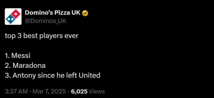2025-03-07 06:00:18達(dá)美樂披薩吹圓神:歷史前三是梅西、馬拉多納、離開曼聯(lián)的安東尼