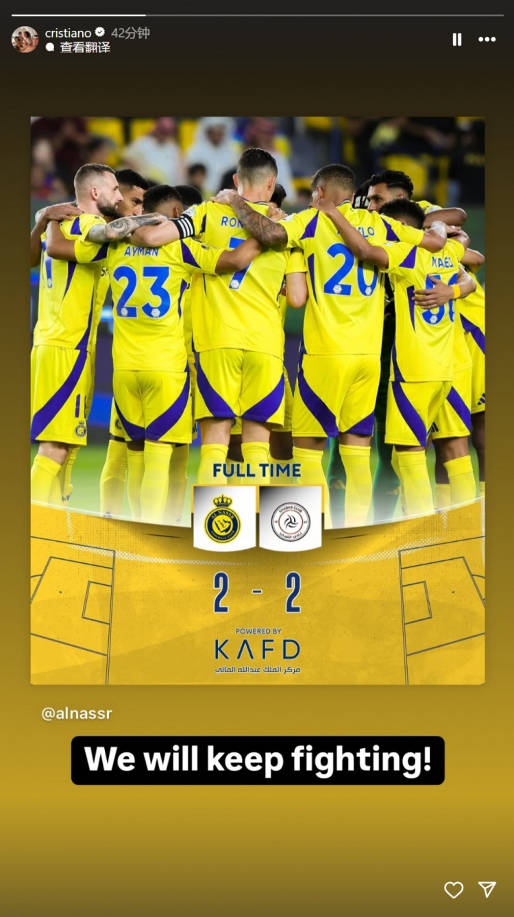 2025-03-08 18:02:26十人戰(zhàn)平!C羅曬全隊擁抱照:我們會繼續(xù)戰(zhàn)斗!