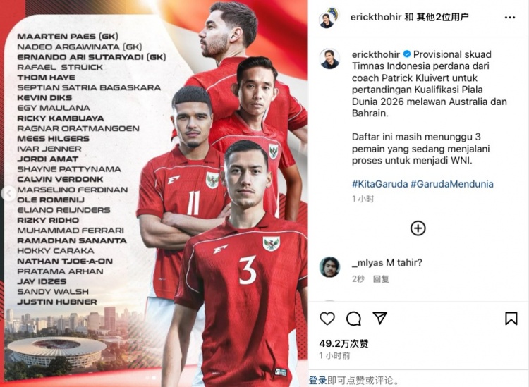 2025-03-09 18:00:08印尼大名單:迪克斯、希爾格斯等歸化球員入選,3月份歸化暫無緣
