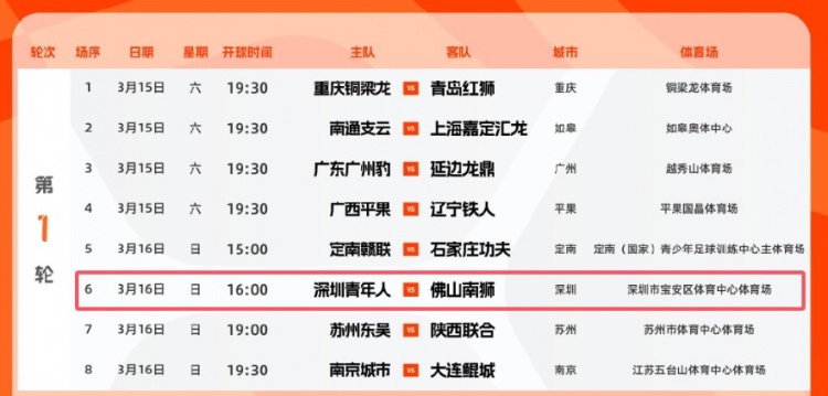 2025-03-10 18:00:18記者:中甲首輪深圳青年人vs佛山南獅可能延期至6月8日