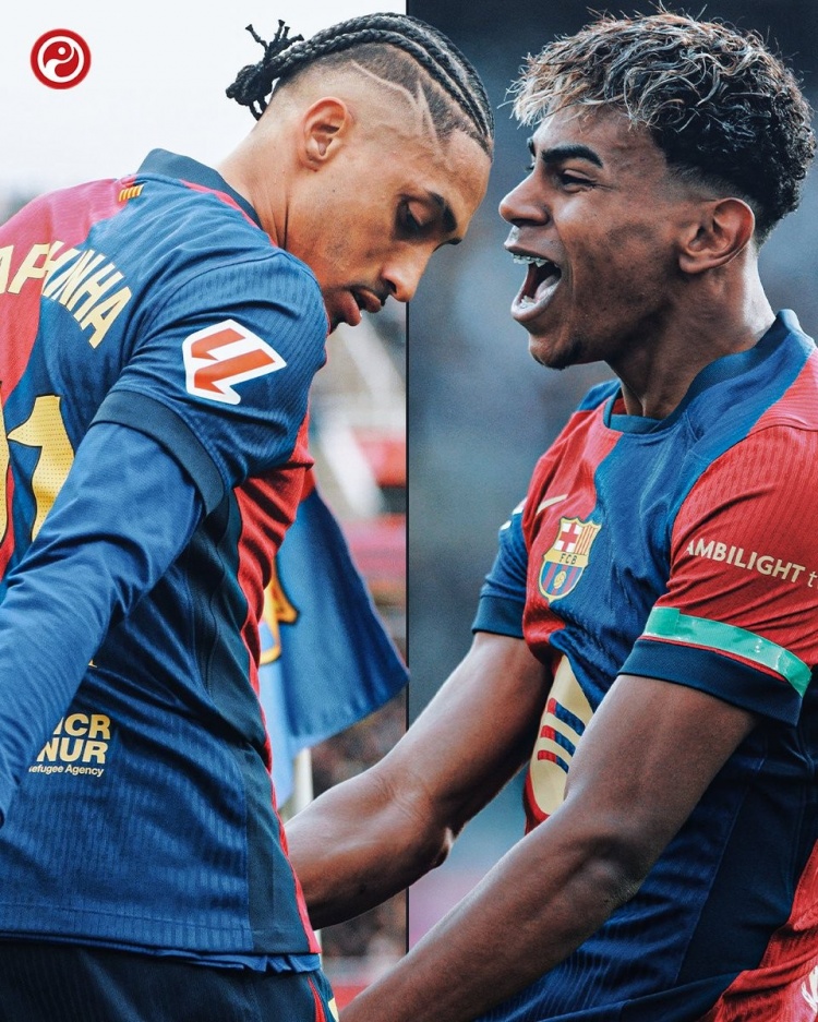 數(shù)據(jù)統(tǒng)計顯示,拉菲尼亞是本賽季西甲唯一在運動戰(zhàn)能夠創(chuàng)造機會50+的球員(57次),他在26輪聯(lián)賽貢獻13球7助攻;亞馬爾本賽季成功過人高達(dá)95次,比其他西甲球員至少多出23次,也是本賽季西甲唯一助攻上雙的球員(11次)。