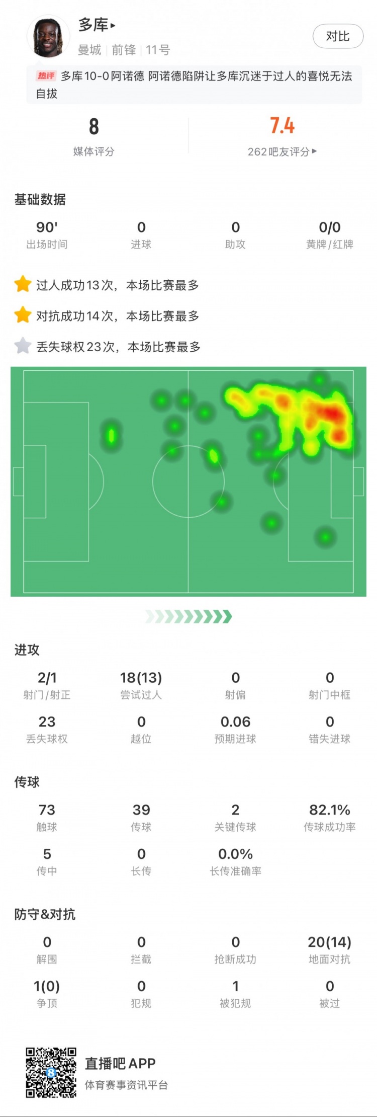 2025-02-24 12:03:03多庫本場數(shù)據(jù):13次成功過人,14次贏得對抗,23次丟失球權均最多
