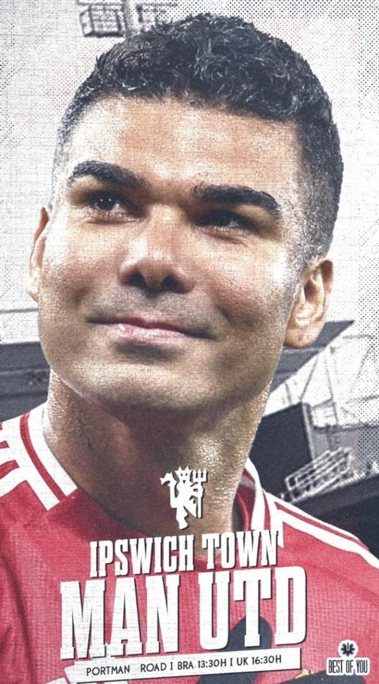 賽前,卡塞米羅曬出海報,預熱這場比賽。他寫道:加油,曼聯(lián)?。?!