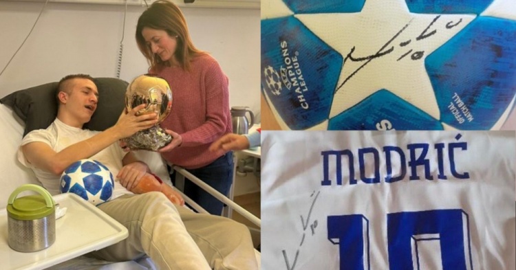 一位天才球員遭遇嚴(yán)重摔傷,莫德里奇將金球獎(jiǎng)送給他合影表示鼓勵(lì)